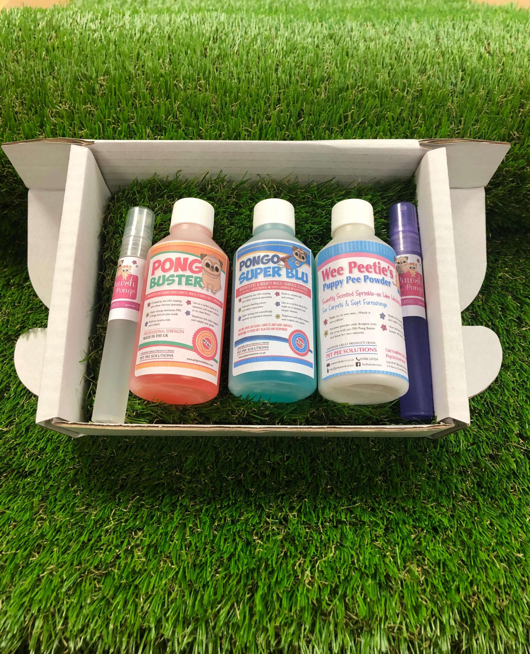 The other 2 little bottles are trial size sprays of the Pawsh Pongs room freshener.