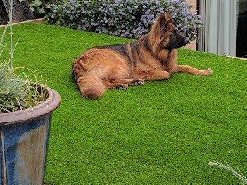 Artificial grass will look great in your garden and be more comfortable for the dog to stand on or circle about looking for the perfect poop place.